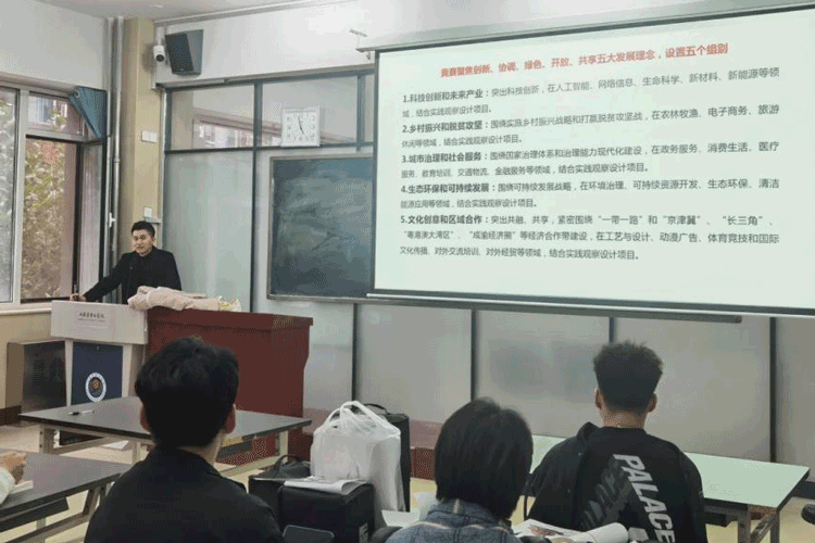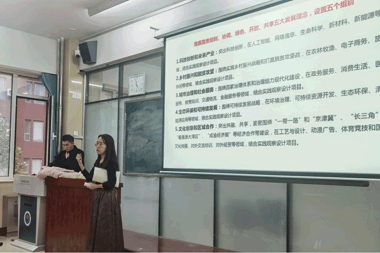 本次动员活动由王婧老师主持,王艺潼、刘松洋老师主讲,教研室主任胡建华教授带领青年教师参与活动。动员会上王艺潼老师详细解读了“挑战杯”大学生创业计划竞赛实施方案的文件,以往届获得国家级、省级“挑战杯”优秀事例做了生动而精彩的动员。并要求同学们注重用数据体现调研报告的严谨性,理论联系实际,重点强调了多学科合作的重要性。刘松洋老师以竞赛聚焦“创新、协调、绿色、开放、共享”发展理念为主题,解读了“挑战杯”五大类别和十个项目等设计方向,包括科技创新和未来产业、乡村振兴和脱贫攻坚、城市治理和社会服务、生态环保和可持续发展和文化创意和区域合作五个大类,以及“基于保护与传承大运河文化视域下的德州段大运河沿岸文化创意产品设计与数字化展示平台”“后疫情时代下个人防护产品一次性口罩的回收与处理产品设计、基于乡村振兴战略”“促进农业生态可持续发展背景下的秸秆材料的产品创新设计研究”等十个具体设计项目。王婧老师要求同学们积极报名,踊跃参与,根据个人志趣、兴趣理性组建竞赛小组并在导师指导下明确选题方向,认真撰写申报书。