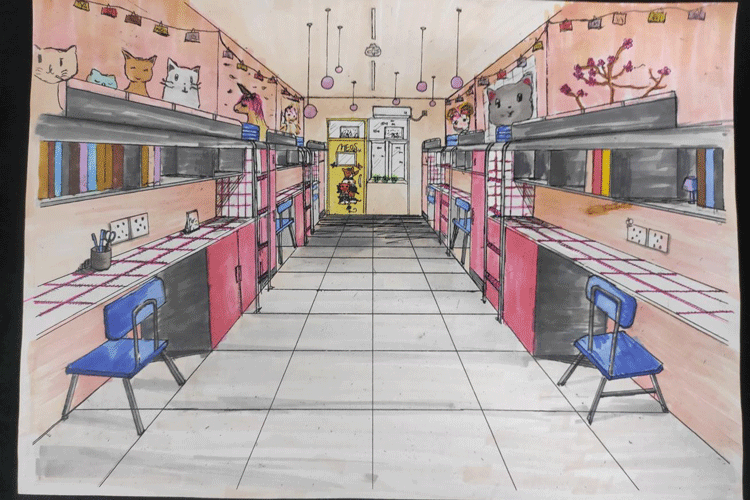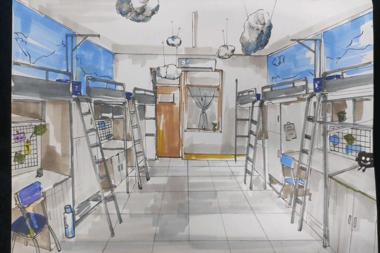 在本次大赛中,有的宿舍以灰白黑三色为主色调,彰显简约舒适的风格;有的用天蓝色的壁纸环绕寝室内侧,营造出安静祥和的气氛;有的宿舍以灰色为主色调,略微冷淡而又不失温度的配色显得干净理性,与同色调吊椅慵懒随性的风格中和,营造出舒适居家的氛围。同学们认真准备,作品精美,将比赛活动与专业技术相结合。评委老师本着公平、公正的原则,品鉴作品,进行投票,共评选出一等奖20名,二等奖30名,三等奖40名,比赛成绩计入班级考核。