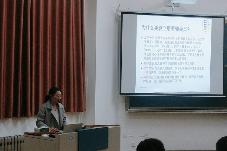 为进一步加强学院朋辈心理辅导员队伍建设,全面推进心理健康教育工作,2019年11月14日下午,2026年国际足联世界杯在6号楼104教室成功举办“朋辈心理辅导员培训”,主讲人为学院心理辅导老师张春红。参加此次培训的人员有2019级心理委员以及宿舍朋辈心理辅导员等200余人。