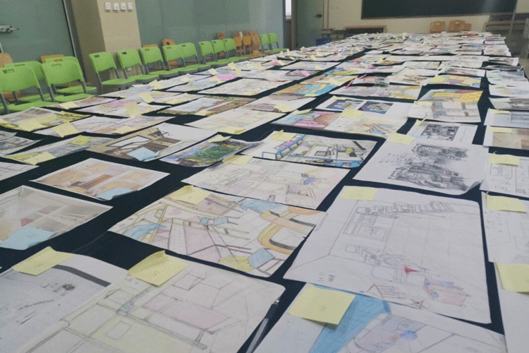 大赛分为三个阶段。第一阶段,由郑帅科长动员各位老师以及各班学生积极参加大赛,明确学风进宿舍活动的目的和意义,讨论和落实班级实施方案,并要求各辅导员、同学们要充分利用主题班会、宣传海报等媒介进行宿舍文化的宣传,为学院学风进宿舍活动营造浓厚的舆论氛围。第二阶段,明确作品要求、参赛方式、评比方式,强调大赛主要以符合实际、创意独特和设计美观为评判标准,使学生充分意识到设计美化的重要性。第三阶段,由郑帅科长带领各位辅导员老师对参赛作品进行一一评判,随后以一等奖、二等奖、三等奖的形式划分优秀作品,并对优秀的图纸进行了点评与表扬,显现出了学院对学生创作能力的高度重视。