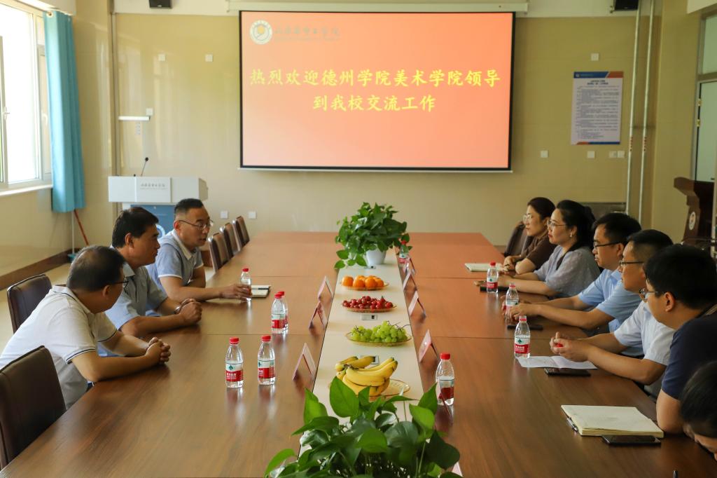座谈中,李海龙对董福君一行的到来表示欢迎,并介绍了学院的发展历程、发展现状和学院总体情况。刘光晓重点介绍了学院党建工作现状、学生教育管理服务和第二课堂建设工程等方面的工作。双方就党建工作、专业建设、学生工作和队伍建设等方面进行了深入交流,并达成合作意向。会后,董福君一行参观了德州市第三届大中专学生手工书画作品展和学院毕业设计作品展。