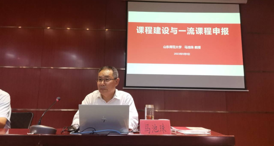为不断提升教师教学能力与水平,学院开展了系列教师教学能力提升专项培训活动。2023年9月9日,学院邀请山东师范大学教授、博士生导师马池珠教授进行了一场主题为《课程建设与一流课程申报》的讲座。讲座由李海龙院长主持,全校150余名教师参加了讲座。