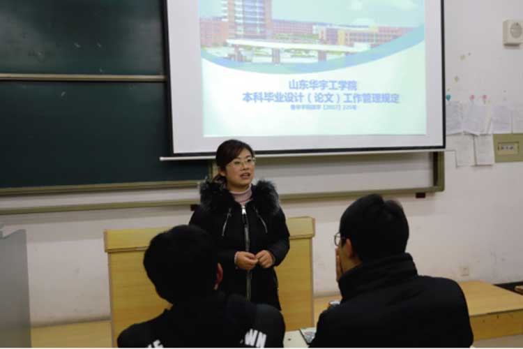 然后,她对毕业设计进程安排、各项文件撰写、论文查重检测及答辩等各个方面做出了详细说明,并要求全体指导教师以认真负责的态度完成指导工作。