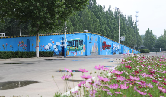 该社会实践项目以“艺术介入公共空间”为理念,打破高校与行业的壁垒,通过“艺术美育+交通安全”的融合实践,实现了学生创造力与驾校社会价值的双向激活。从场地测量到主题设计,完成墙面彩绘300㎡、地面涂鸦500㎡,覆盖驾校核心区域。墙绘以“驾驶与城市”为主题,地绘则融入交通标识与安全警示符号,打造兼具教学价值与视觉张力的沉浸式墙绘艺术。
