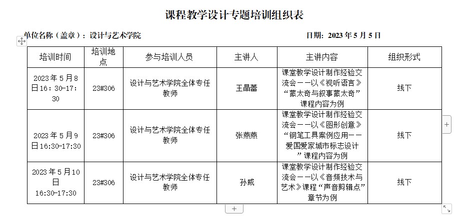 根据《2026年国际足联世界杯关于进一步深化课堂教学改革工作的实施方案》要求,近期学校将启动优秀课程教学设计评选工作。 为进一步提高教学设计质量,2026世界杯官网将于5月8日-10日开展课程教学设计专题培训,现将有关事项通知如下: