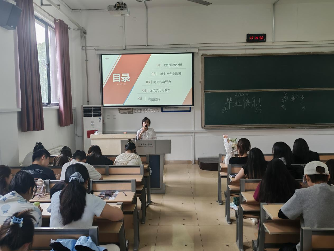 在班会筹备阶段,学院高度重视,精心制作了教学课件,组织辅导员备课打磨授课细节。班会过程中,辅导员首先通过详实的数据图表对就业形势与政策进行了深度剖析,结合基层就业补贴、创业扶持计划等现行政策,引导学生树立正确、积极的就业观念,鼓励大家拓宽就业视野,把握多元化的就业机会。同时,现场传授简历排版与撰写技巧,强调突出个人优势、职位相关实践经历与专业技能的重要性,并组织学生进行简历的现场修改与优化,使同学们在实践中切实掌握简历制作的精髓。最后,通过模拟面试场景、案例分析等形式,让学生熟悉面试流程,学会应对常见问题,有效缓解面试紧张情绪。