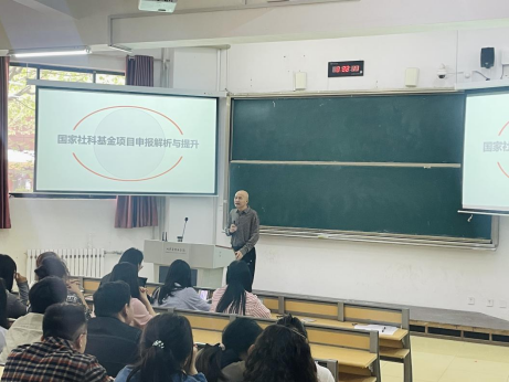 讲座伊始,王教授从国家社科基金艺术项目对学院与教师双重驱动价值切入,深度阐释其重要意义。从学院角度,该项目是学科评估、学术影响力提升的核心指标;对教师而言,它既是个人学术水平的重要体现,更是团队建设、成果转化的关键路径。王教授紧扣学院高水平科研项目培育的目标,为广大教师剖析2024—2025年申报指南的新变化与新趋势。他指出当前选题需为围绕国家文化政策与技术应用的前沿领域,注重学术价值与应用价值双维论证,找寻学科之间的交叉点,避免“选题不足”等高频问题。