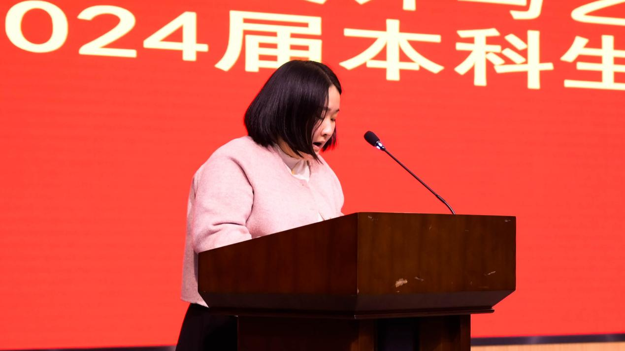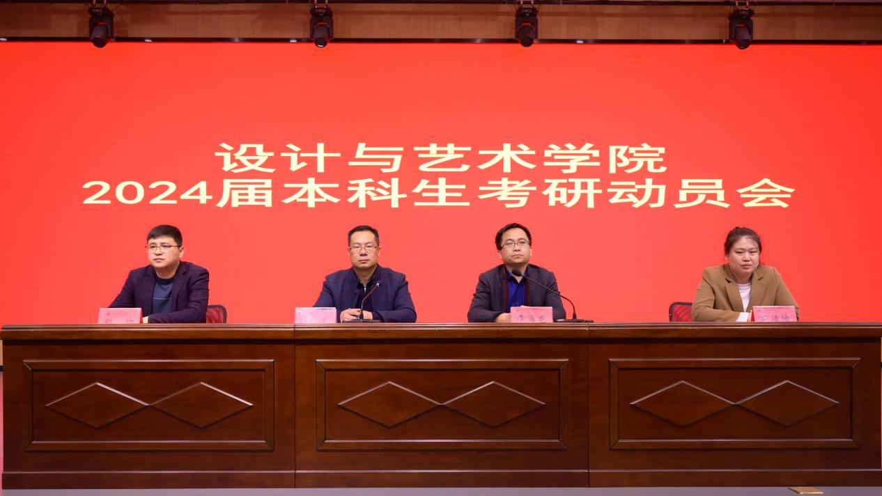 大会由副院长刘光晓主持,共有四项议程,第一项议程,考研优秀学生代表本科艺术1801班董博文、本科产品设计1802班范湉湉以VCR的形式分别作了考研经验交流。董博文同学分享了考研公共课和专业课的学习方法,范湉湉同学分享了自己的备考技巧和研究生生活,鼓励师弟师妹们树立考研信心,争取一战成硕。第二项议程,学生代表本科环境设计2004班孙晓雯同学上台发言,她告诉同学们要结合自身的情况明确自己的定位,放平心态地去选择考研方向,持之以恒,不骄不躁,扎实的付出定能取得胜利的曙光。第三项议程,学院辅导员唐小芳老师作考研动员讲话。她指出辅导员应开展好学生考研的指导工作,找准切入点、关键点与保障点,在合适的时间点抓住学生的考研动机并进行切实的引导。第四项议程,学院院长李海龙作总结讲话。他介绍了近五年来学院的考研情况,又深度解读了学校相关考研政策,最后提出三点建议,一是提醒同学们认识到考研对自身发展的重要性,他语重心长的讲到人生没有重来,要珍惜求学时光;二是鼓励同学们将自身的崇高理想与国家、社会的发展结合起来,立大志,成“大写的人”,提高自身素质,为国家和社会作出应有贡献;三是强调考研成功与否取决于坚持与否,勉励所有同学坚定目标,坚持到底,并最终取得满意成绩。