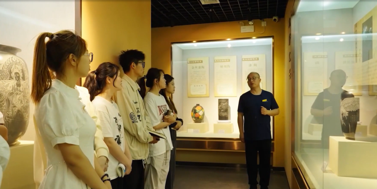 活动现场,中国黑陶研究工作人员、德州民间艺术家协会会员刘老师为同学们详细介绍了德州梁子黑陶的传承、创新以及发展情况,并详细介绍了馆内藏品,既有珍贵的历史文物,也有现代艺术家的新创之作,古今技艺和风貌共同呈现,让同学们走进了一个厚重而精妙的黑陶世界。同学们驻足凝神,仿佛能看到人们劳动、创作的场面,听到穿越历史的回响。作为德州的三绝之一,黑陶已被列入国家非物质文化遗产名录。