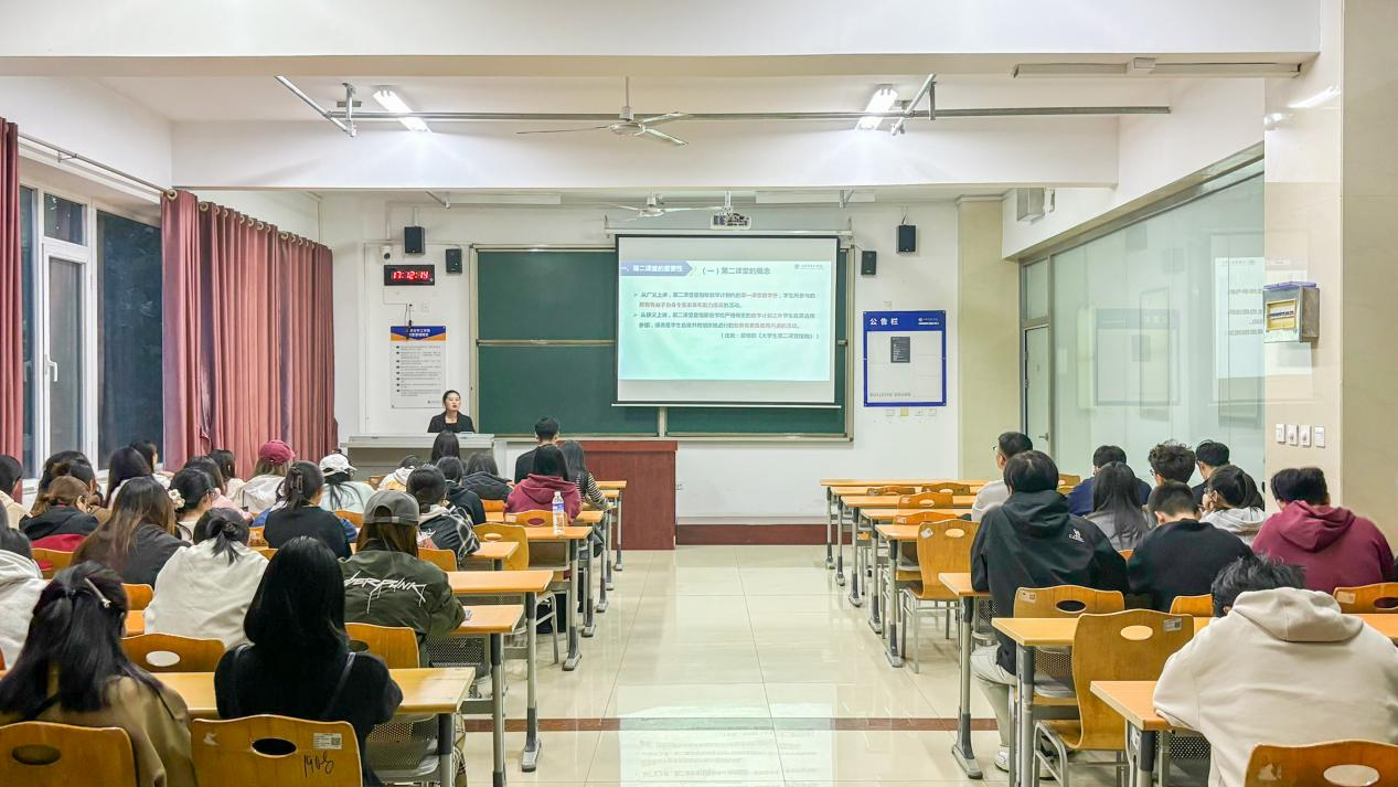 学院第二课堂师生宣讲团由3名辅导员和9名优秀学生组成,共开展宣讲活动36场次,帮助学生全面熟悉第二课堂平台体系,以便更好的参与第二课堂活动。宣讲团师生深入2024级新生班级,就对第二课堂的概念、目的和意义进行了详细介绍。第二课堂宣讲团老师强调,就立德修为、实践创新、沟通互动、体育竞技、人文艺术、生涯发展6个平台进行了详细的讲解,并鼓励同学们积极参与各项活动,丰富自己的课余生活,还能有效提升其综合素质和竞争力,为未来的职业发展奠定坚实基础。第二课堂宣讲团学生成员结合自身参与第二课堂活动的成功案例和心得体会,就第二课堂活动的选择、学分认定、活动报名等进行了分享,进一步激发了同学们的参与热情。