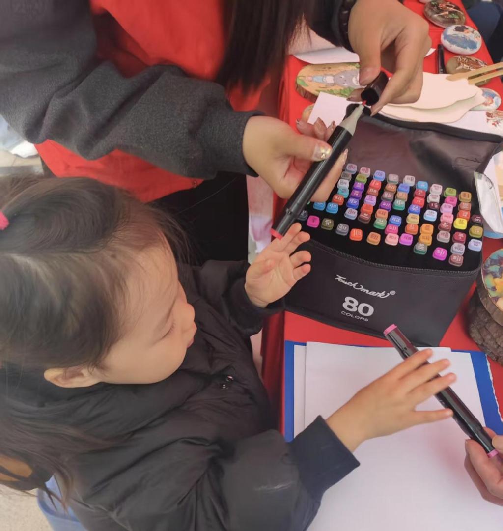 在活动现场,志愿者们向社区居民介绍了扇子绘画的方法,让大家有更深入的了解。随后,志愿者们分发了空白扇面、颜料和画笔,灵活运用所学知识、将课堂与实践相互结合。耐心地指导小朋友们绘制图案。大家纷纷拿起画笔,在扇面上勾勒出自己心中的美好画面。剪纸教学同样精彩,志愿者们展示了一些精美的剪纸作品,引得小朋友们阵阵赞叹。