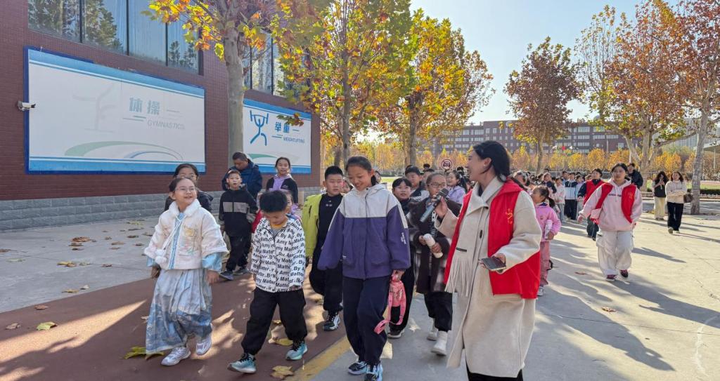 活动现场,大学生志愿者们提前规划路线,带领小朋友们沉浸式参观教学楼、图书馆、操场等校园场所,生动讲解建筑功能与校园文化;以趣味互动形式指导采访、写作等小记者基础技能,引导孩子们记录见闻并模拟采访;还通过知识问答、互动游戏等环节传递学习理念。大学生志愿者们在一旁陪伴引导,耐心解答疑问,适时给予实践启发,现场氛围温馨而热烈,小朋友们在体验中收获新知既拓宽了视野,也激发了表达欲与自信心。